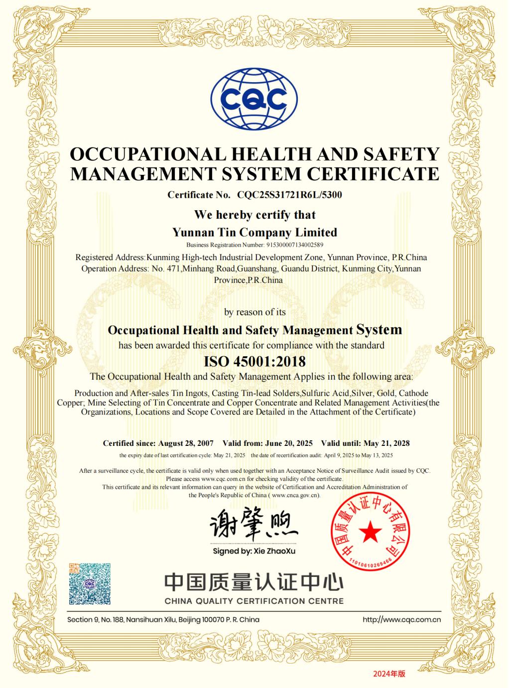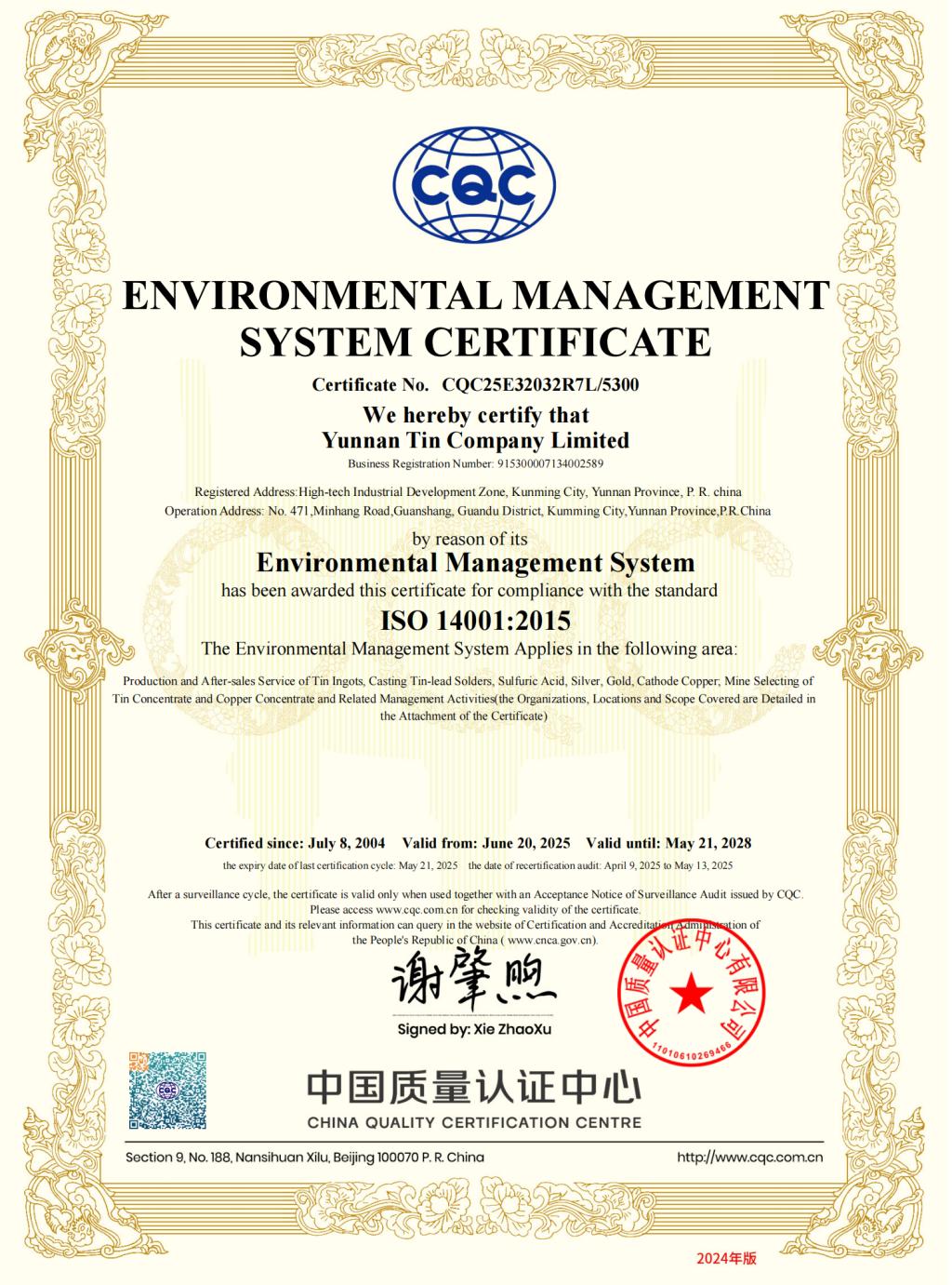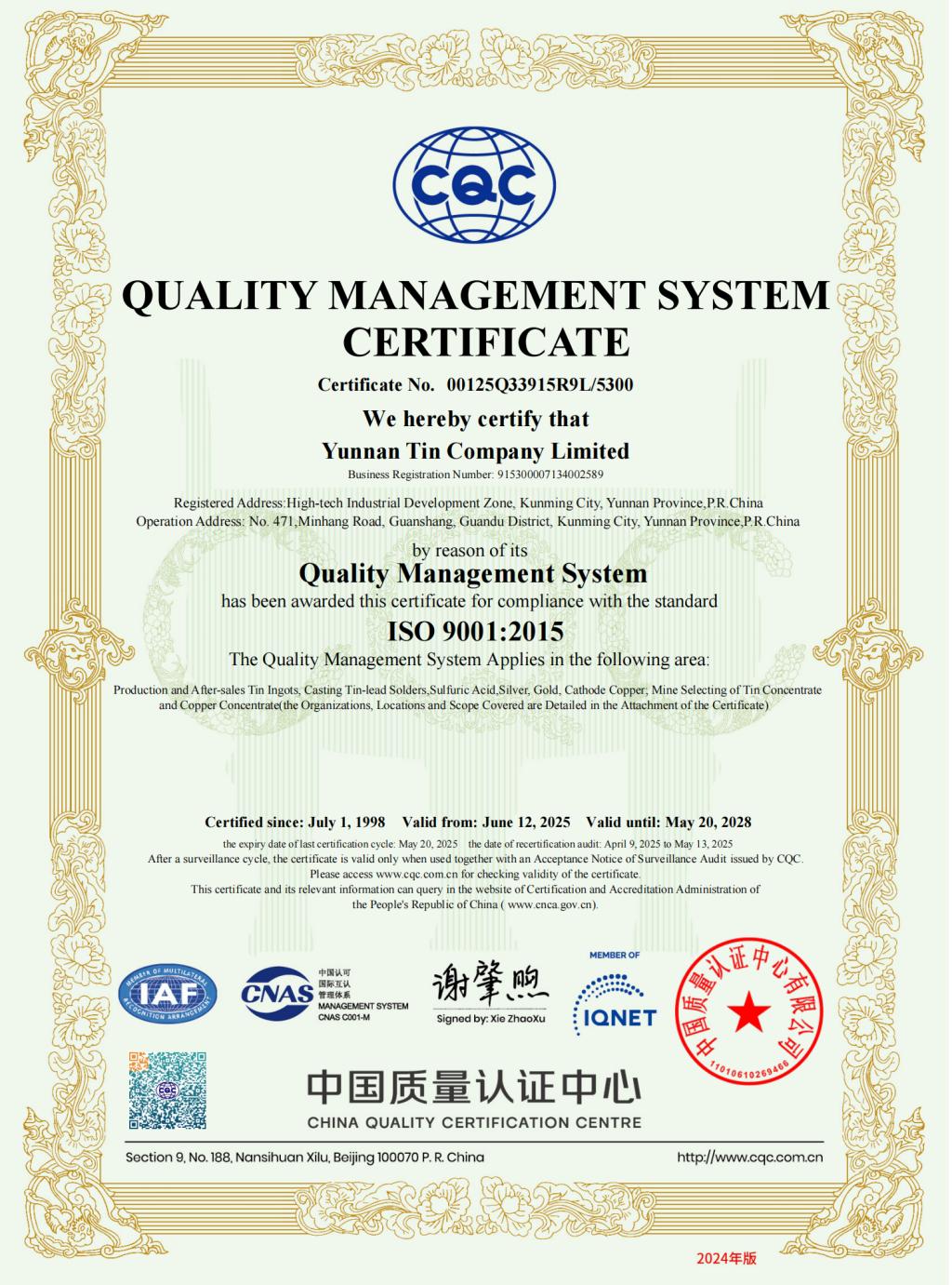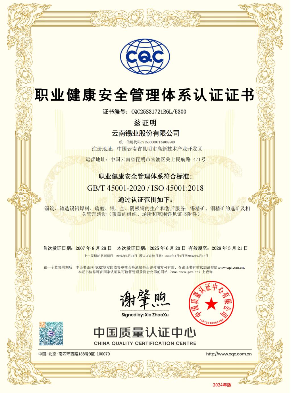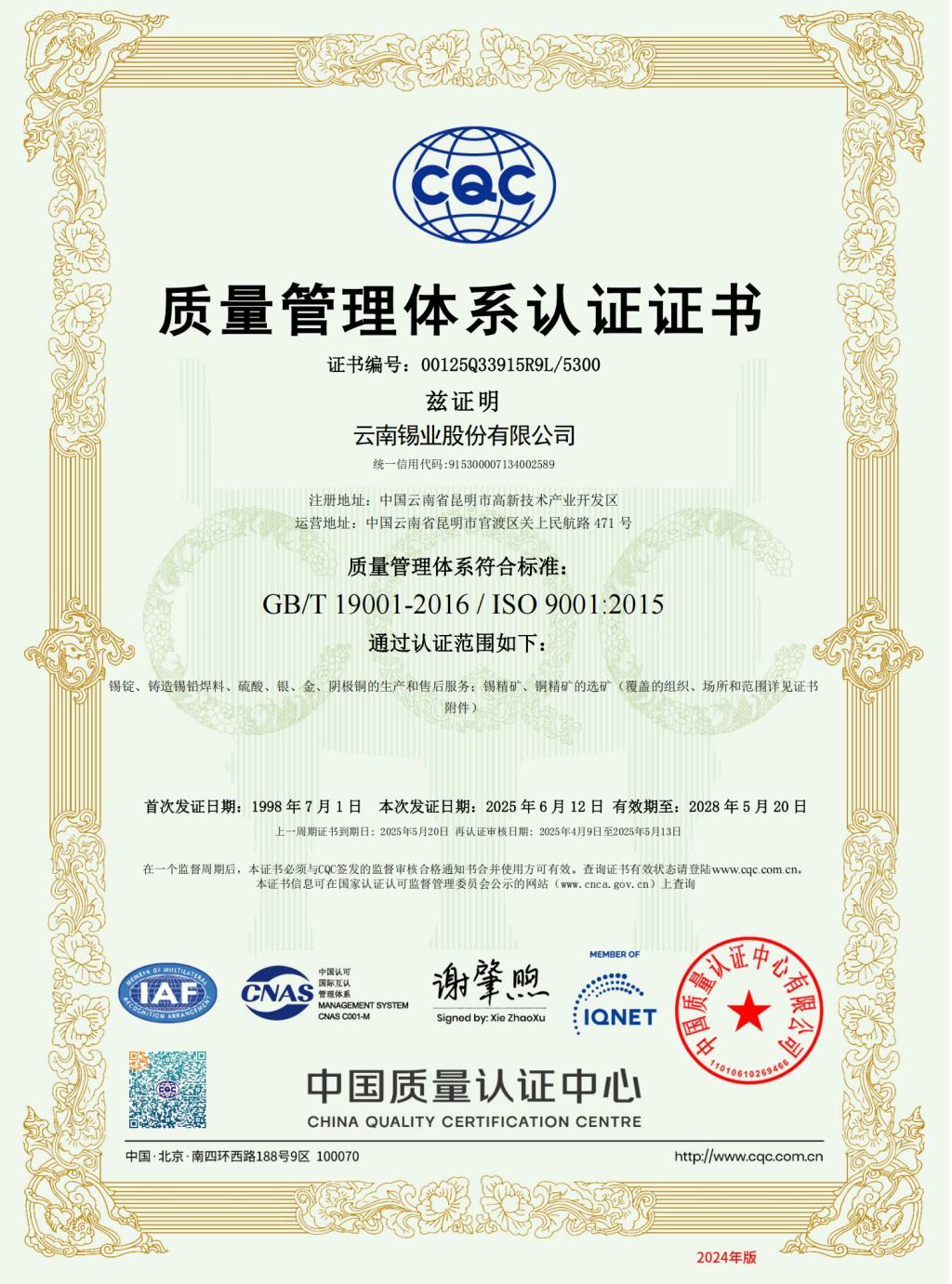 ?2024 云南錫業股份有限公司 版權所有 滇ICP備05000865號 滇公網安備 53250102000007號