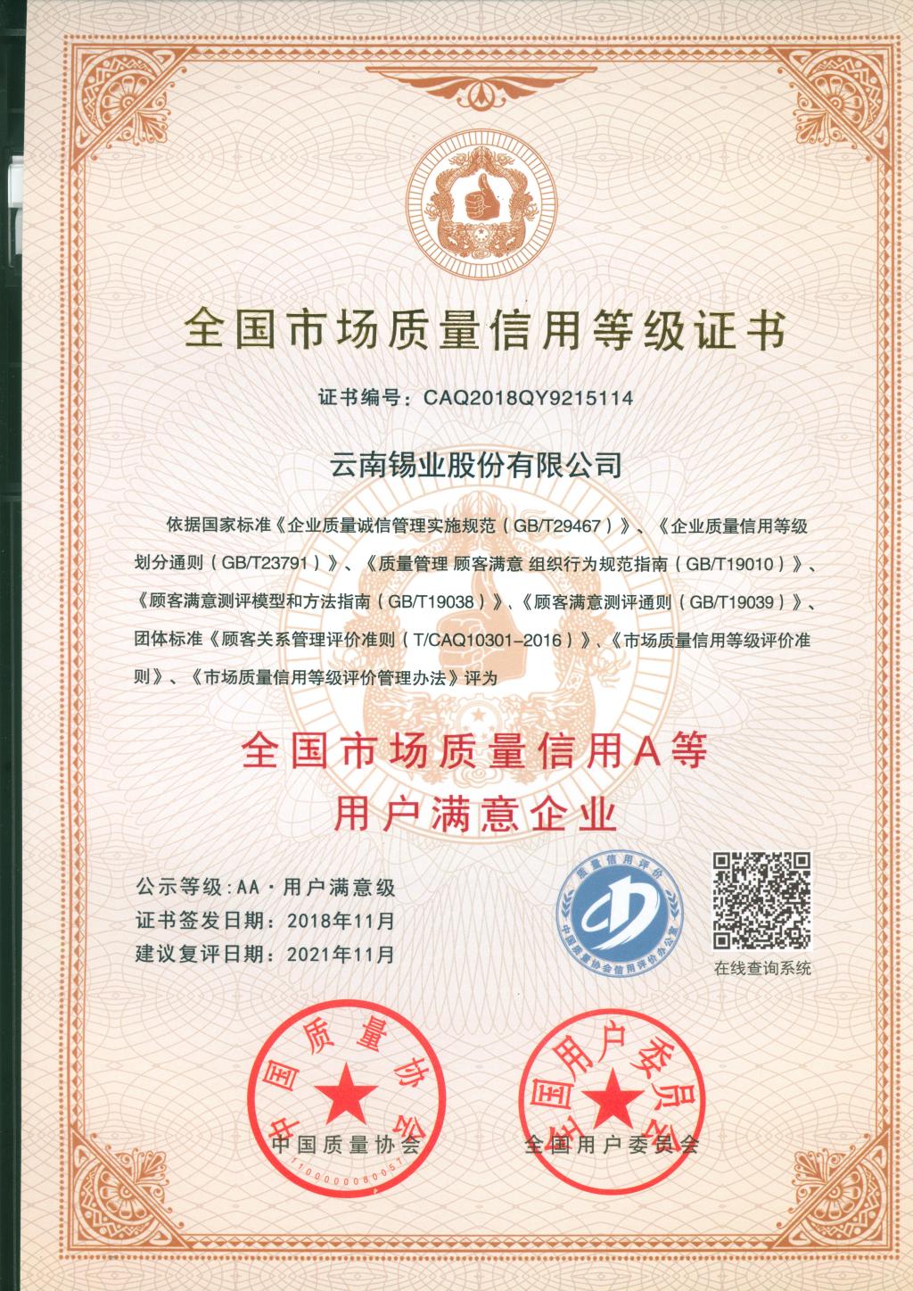 每一項榮譽都是錫業人智慧與汗水的凝聚