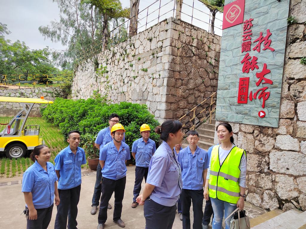 在選礦車(chē)間,吳君首先參觀了蘇云霞技能大師工作室,看望慰問(wèn)技能大師蘇云霞、余歡、段思佳,并與技能大師及其徒弟們進(jìn)行座談,詳細(xì)了解了大師工作室建設(shè)、師帶徒,磨礦、浮選、重選工藝流程及黨建特色工作等情況,對(duì)大師工作室目前踐行“典型引路法”和“一線工作法”所開(kāi)展的師帶徒工作、成立大師技術(shù)攻關(guān)組的做法和成效給予肯定。在座談過(guò)程中,吳君指出:技能大師是云錫稀缺的財(cái)富,各級(jí)管理人員要為技能大師們做好服務(wù)、支撐和保障,讓技能大師培育新人的土壤更肥、培育新人的空氣更清新,努力培養(yǎng)出像耿家勝一樣的國(guó)家級(jí)技能大師。