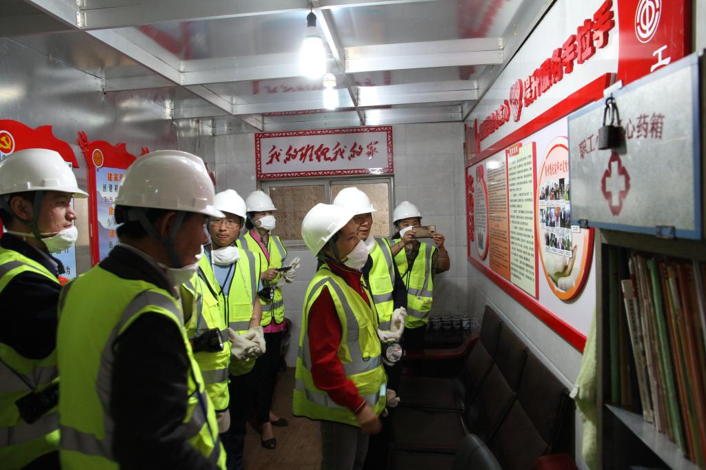 隨后,調研組一行參觀了1360調度指揮中心、1360基礎平臺,并對云錫現代化礦山建設充滿信心;無論是平坦的1360基礎平臺巷道,還是將坑下六大系統運行情況盡收眼中的視頻監控系統,都獲得了調研組領導的贊許。在盲豎井班組黨群之家,強化員工安全意識的教育展板,一張張員工家屬對安全生產殷殷叮囑的照片,使員工在百丈井下也能感受到源自家的溫情,得到了調研組領導對大屯錫礦工會加強職工小家建設的好評。和建英要求,各級工會要不斷推動工會工作機制創新,拓寬思路,讓員工感受到工會組織的力量和作為,切實了解員工生產生活情況,維護員工合法權益,充分發揮工會組織的橋梁紐帶作用,努力推動工會工作再上新臺階。