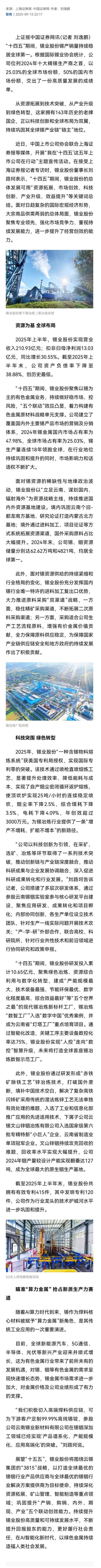 中國證券網:錫業股份——科技突圍 奔赴“綠色智造”新征程