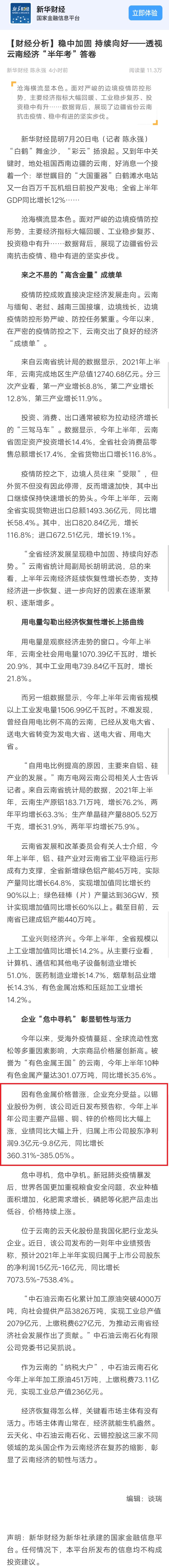 【媒體看云錫】新華財經:穩中加固 持續向好——透視云南經濟“半年考”答卷