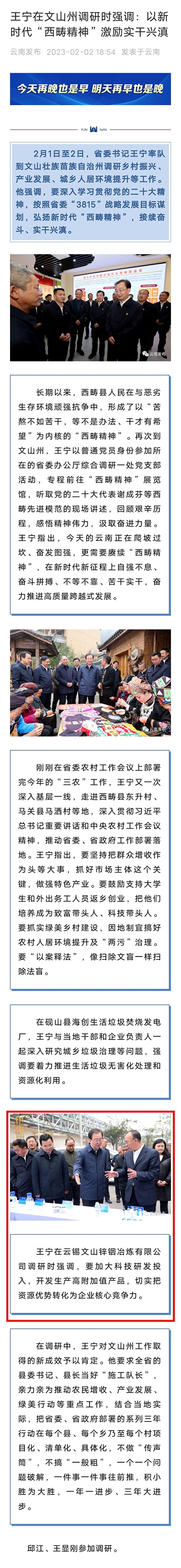 云南發布:王寧在文山州調研時強調:以新時代“西疇精神”激勵實干興滇
