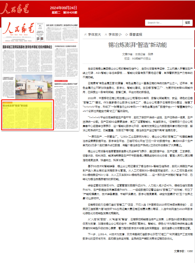 人民郵電報:錫冶煉澎湃“智造”新動能