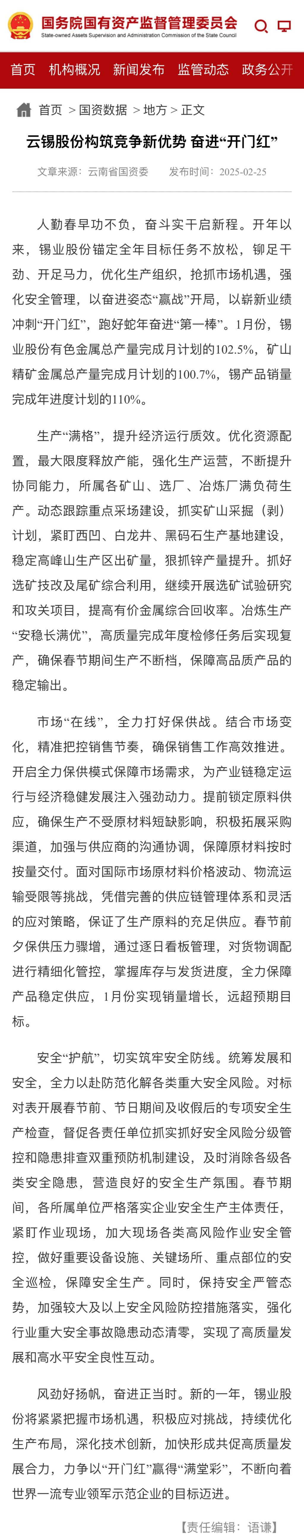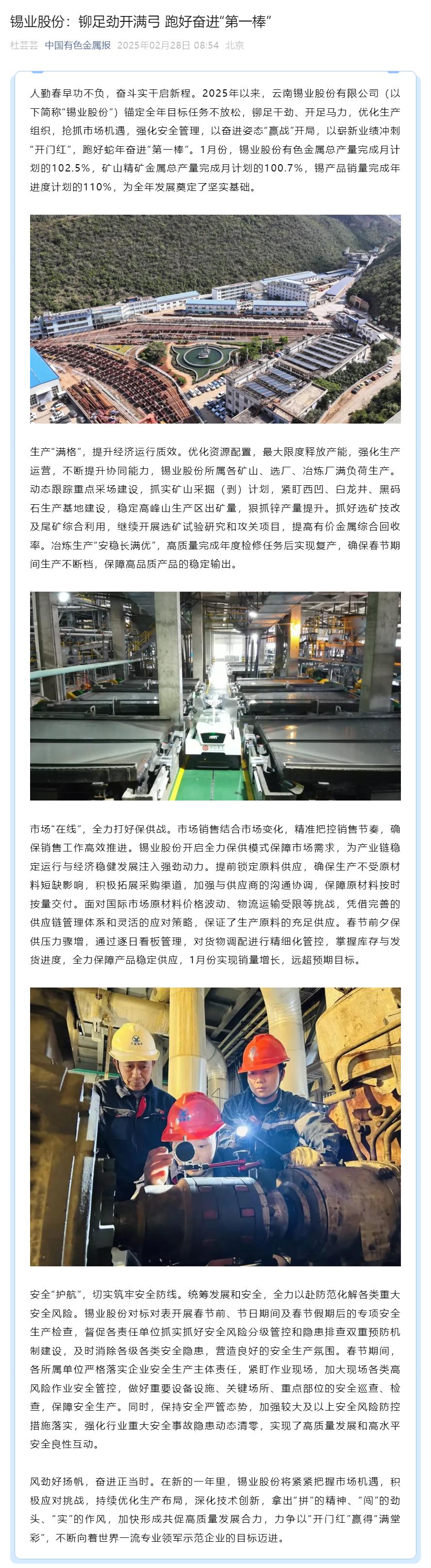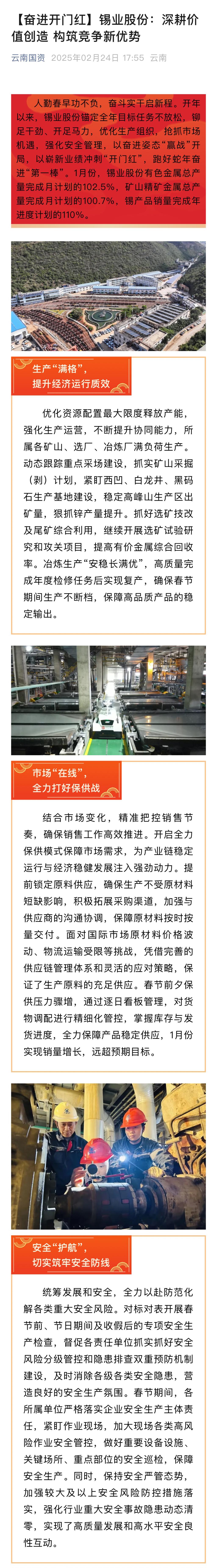 國務院國資委、云南國資、中國有色金屬報:云錫股份構筑競爭新優勢 奮進“開門紅”