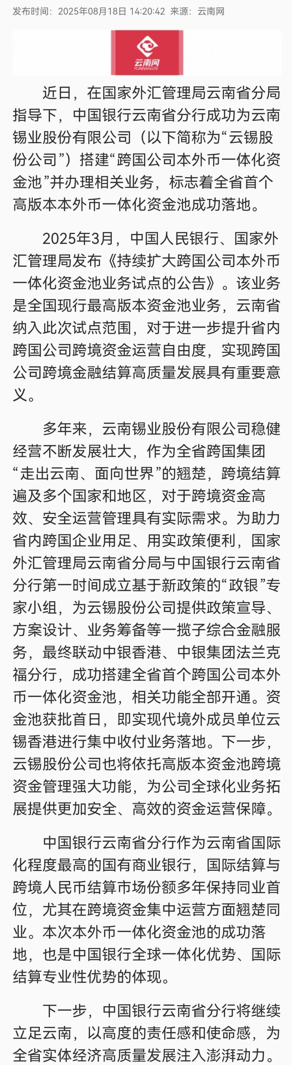 云南網(wǎng):云南省首個跨國公司本外幣一體化資金池落地云南中行