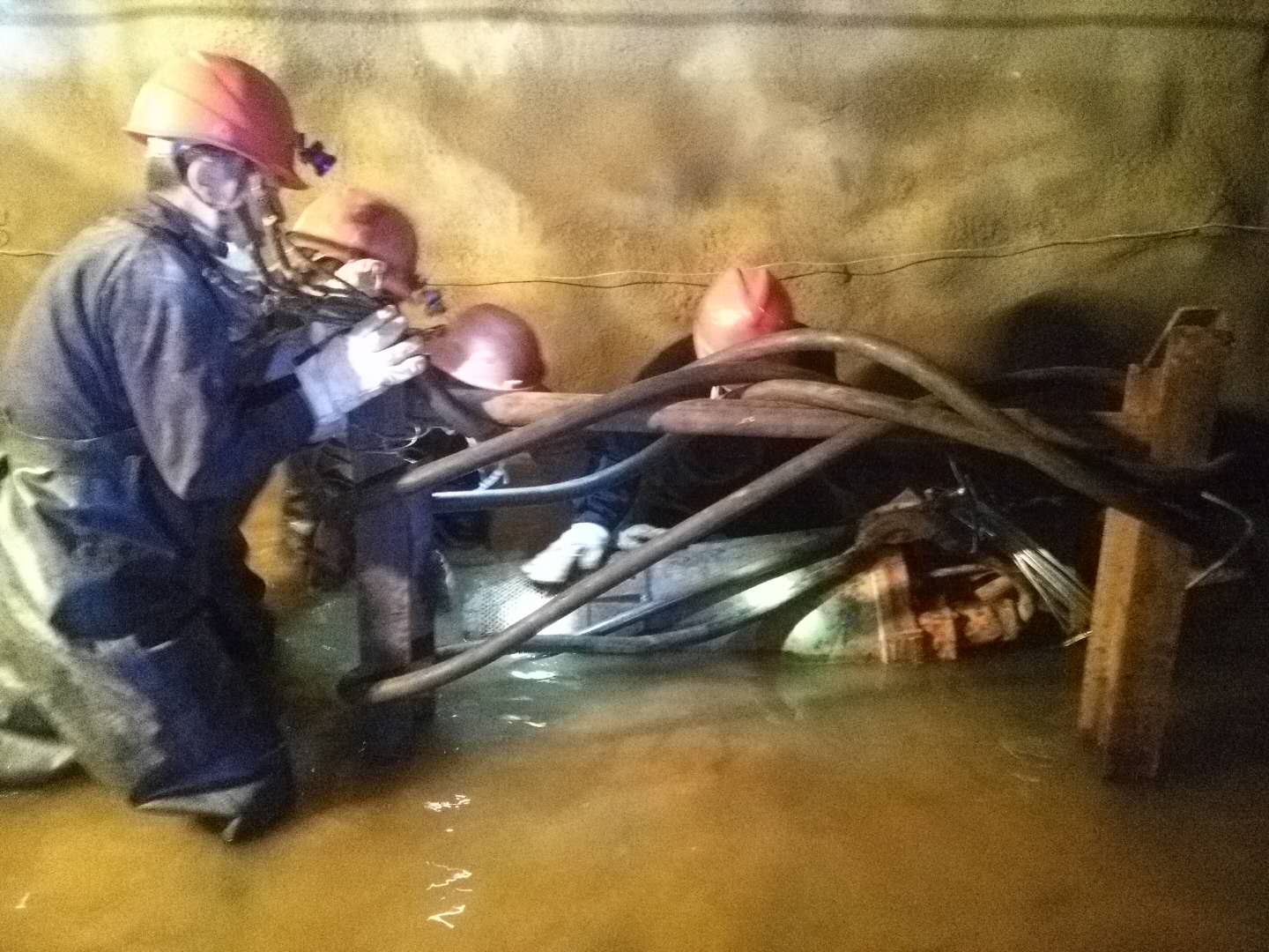1700米中段,2公里多的上班路變成了一片汪洋,巷道、生產(chǎn)設(shè)備被洪水淹沒。由于水流湍急,水位持續(xù)上漲,救援搶險工作進(jìn)展緩慢。危難關(guān)頭,干部職工脫下身上的衣物,就淌進(jìn)了齊腰深的洪流中,一路摸索前行,設(shè)法向生產(chǎn)設(shè)備靠近,最終將被淹沒的設(shè)備搶救出來。