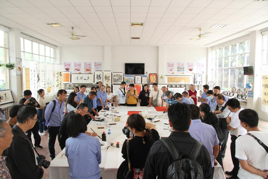交流會上,藝術家們還對云錫職工在此次活動前征集的部分文學、書畫、攝影作品進行點評。文藝愛好者們與大師們近距離地學習與交流,大師們主動傳藝,為培養云錫的藝術人才,活躍文化生活提供了強大的力量。活動在參觀書畫作品展覽,書畫家現場揮毫潑墨進行書畫創作中達到高潮。老藝術家在活動現場即興揮毫潑墨、筆走龍蛇,剛勁有力的書法,讓人領略到了藝術的魅力,為云錫寫下蘊義深遠的《云錫可敬 礦工可親》《云在錫上 金易成錫》《錫映千秋千秋禧 百年礦業礦業興》等作品。